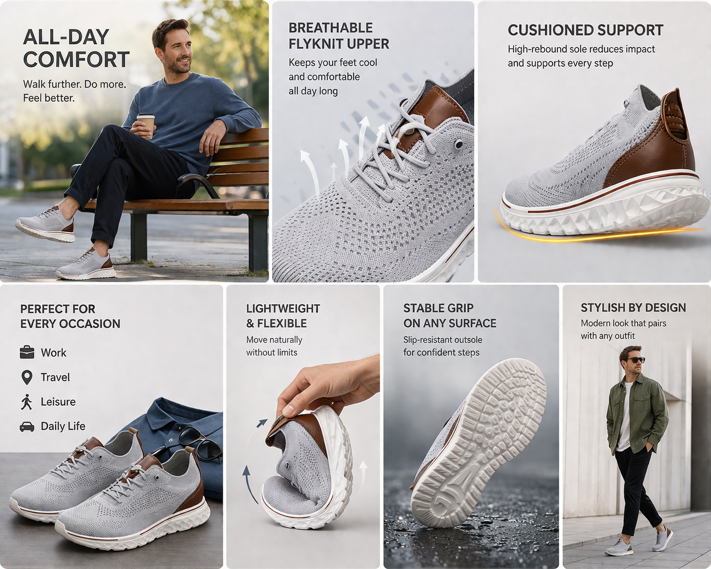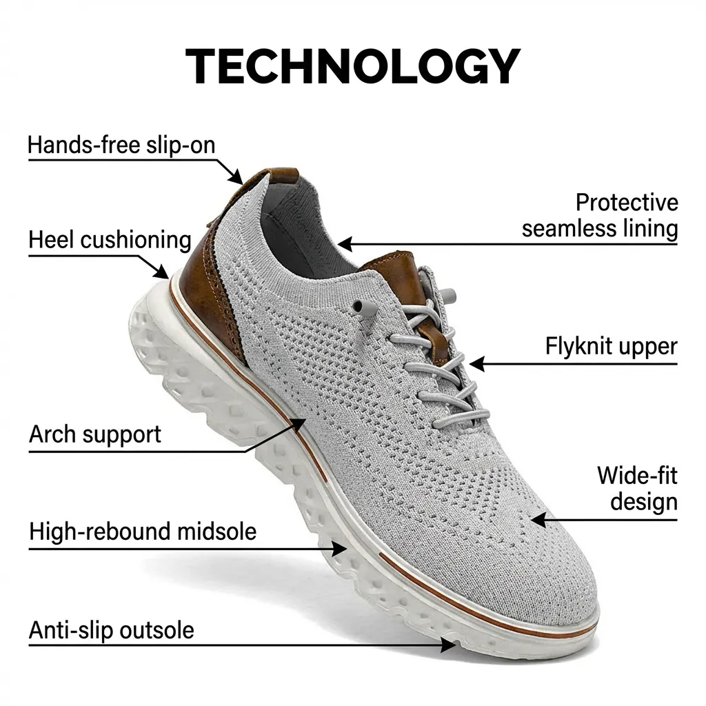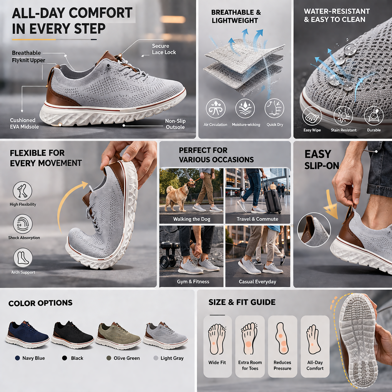 Designed for easy wear, all-day support, and a roomy comfortable fit, these hands-free slip-on walking shoes are made for men who want comfort without compromise. From daily walks to long hours on your feet, every detail is built to help you move with more ease, stability, and confidence.